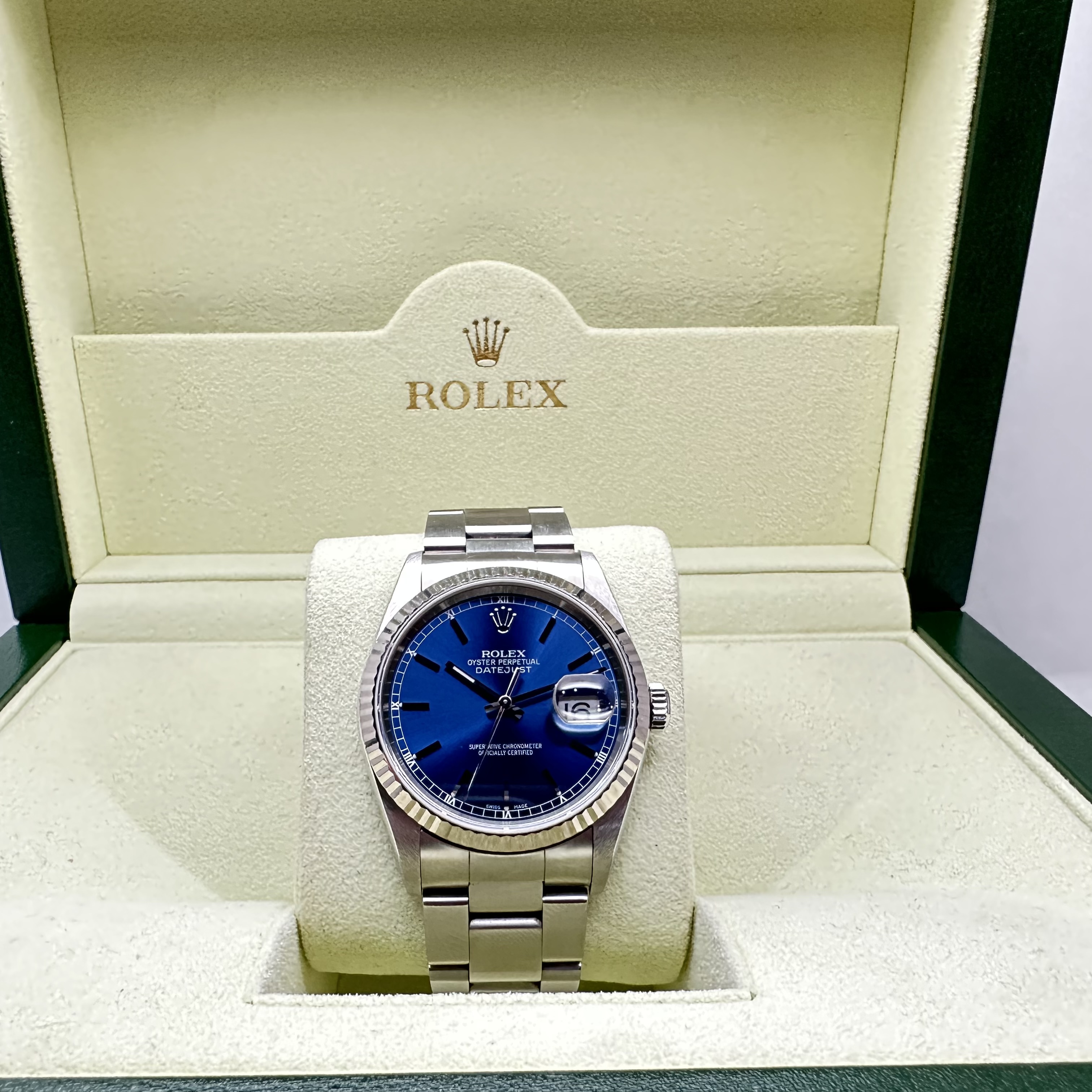 Rolex-Datejust 36mm S/Steel automatic Blue Dial Date Flutted bez