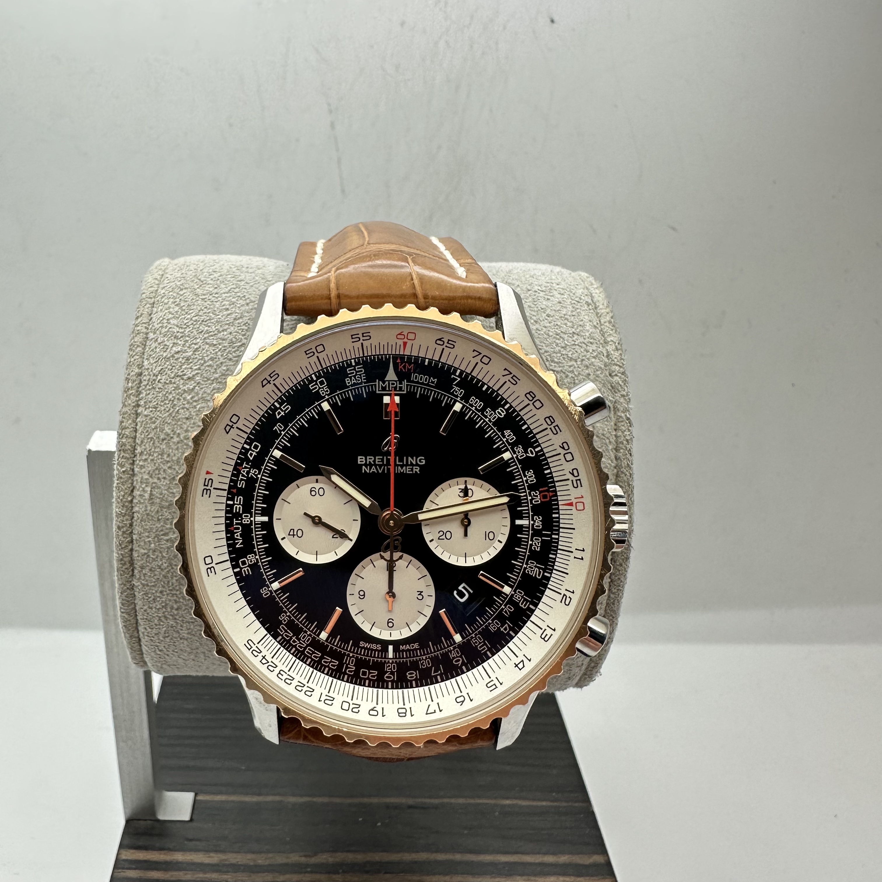 Breitling-Navitimer 46mm S/Steel Rose Gold Bezel Automatic Date