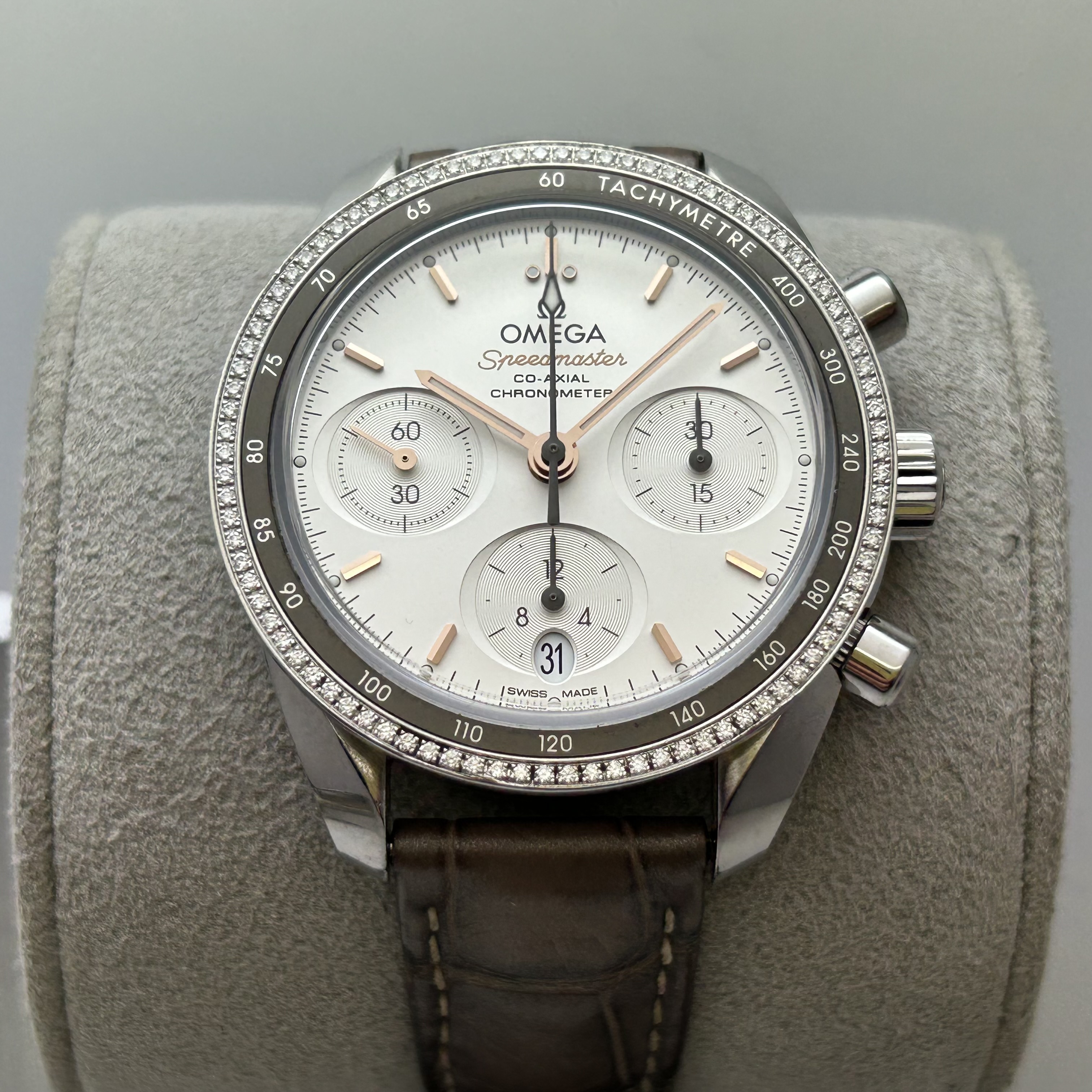Omega-Ladies Speedmaster Co-Axial 38mm With Diamonds